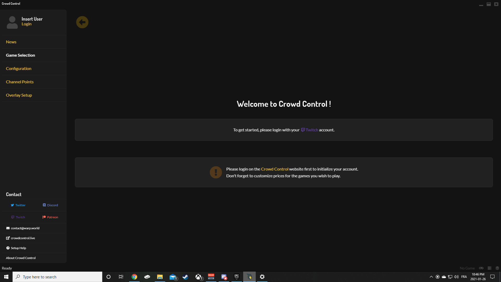 Hey @thepa1ne moved this to the Crowd Control category. Can you give a screenshot of the “About Crowd Control” section at the bottom left of the app? This will show the client version. A screenshot of any errors you might see when logging in can help too.